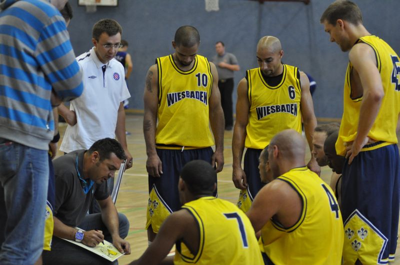 Der BC Wiesbaden bleibt bei seinem ersten Heimspiel der Saison ungeschlagen und übernimmt vorübergehend die Tabellenführung in der Oberliga Hessen. Die gut 150 Zuschauer im Camp Lindsey sahen einen verhaltenen Anfang beider Teams. Einzig der Treffsicherheit, des wie immer sehr lebhaft agierenden Benedicte, jenseits der 3er Linie, hatten die Hausherren ein ausgeglichenes Ergebnis nach dem ersten Viertel zu verdanken. Beide Mannschaften haben sehr zurückhaltend verteidigt was in der Offensive allerdings kaum genutzt werden konnte.