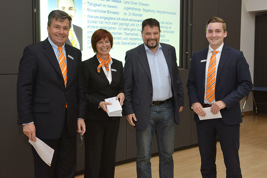Auch der Baketball Club Wiesbaden erhält 500 Euro. Naspa-Mitarbeiter Lars Griesam, Trainer im Verein, hatte sich darum beworben um sein Projekt zu fördern: Ein Tages-Basketball-Schnupper-Kurs unter dem Motto „Basketball für alle – Persönlichkeitsentwicklung durch Sport“ soll mit dem Geld finanziert werden.