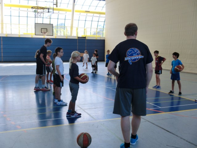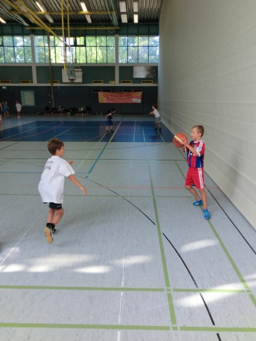 Nachdem die Campteilnehmer sich am Montag in Judo und am Dienstag in Volleyball probierten, stand am Mittwoch Basketball im Programm. Mit Marc, Maxi, Flo, Jan, Samir und Anna betreuten sechs BCWler insgesamt 68 Kinder.