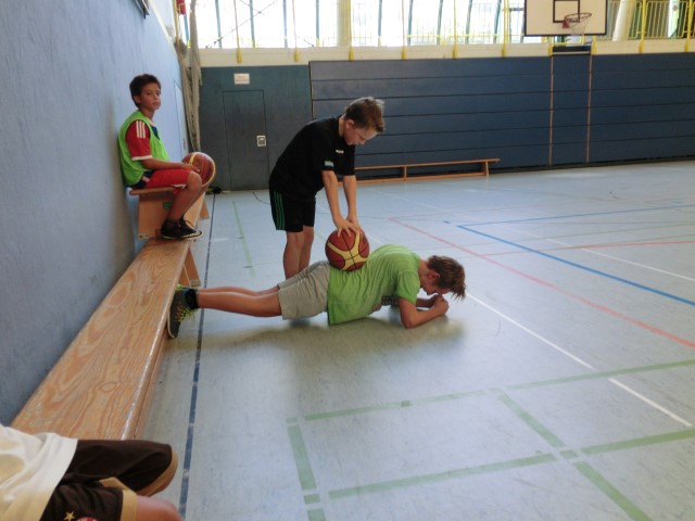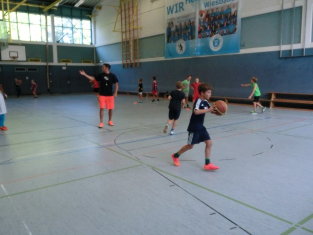 Nach einem gemeinsamen Warm-Up wurden diese in vier Gruppen auf Grundlage ihrer bisherigen Basketballerfahrung aufgeteilt. Vormittags standen die Stationen Ballhandling, Werfen/Passen, Defense und Offense auf dem Programm.